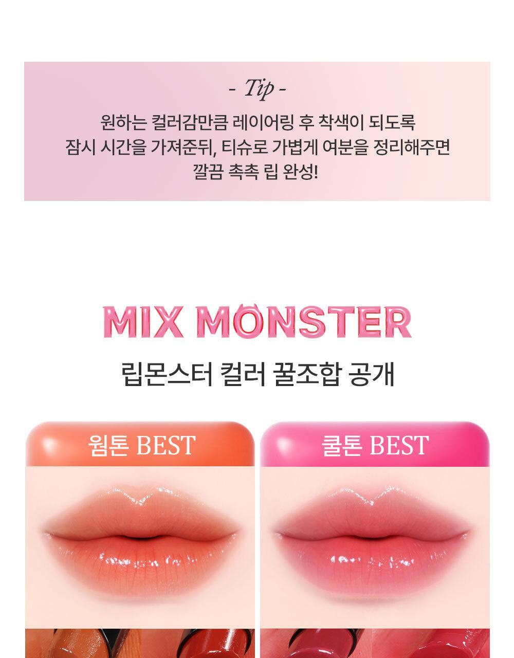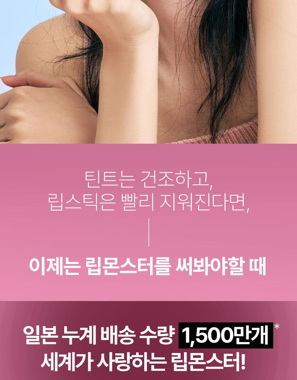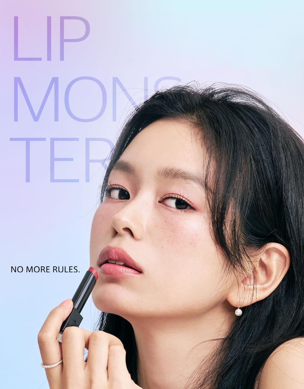 Ranked 1st place in the overall makeup category. The total number of shipments in Japan reached 15 million. A soft texture that melts like heated butter in a bowl. It provides a moist, non-sticky feeling and a glossy glass-like shine. It shows a seamless color that deepens transparently like the original color. The unique formula of Lip Monster transforms moisture evaporating from the lips into a tight gel membrane.