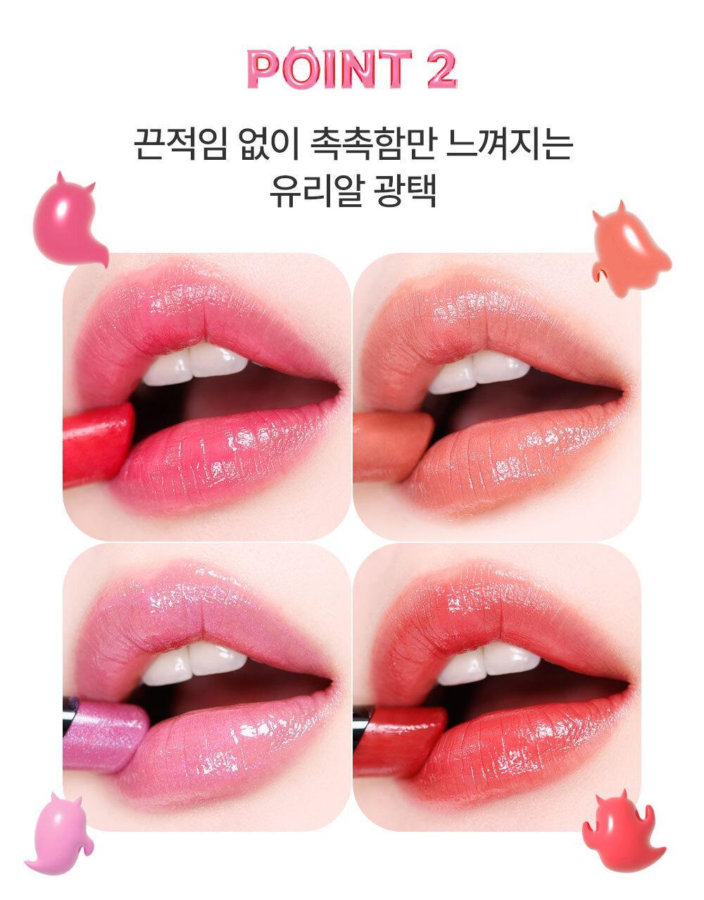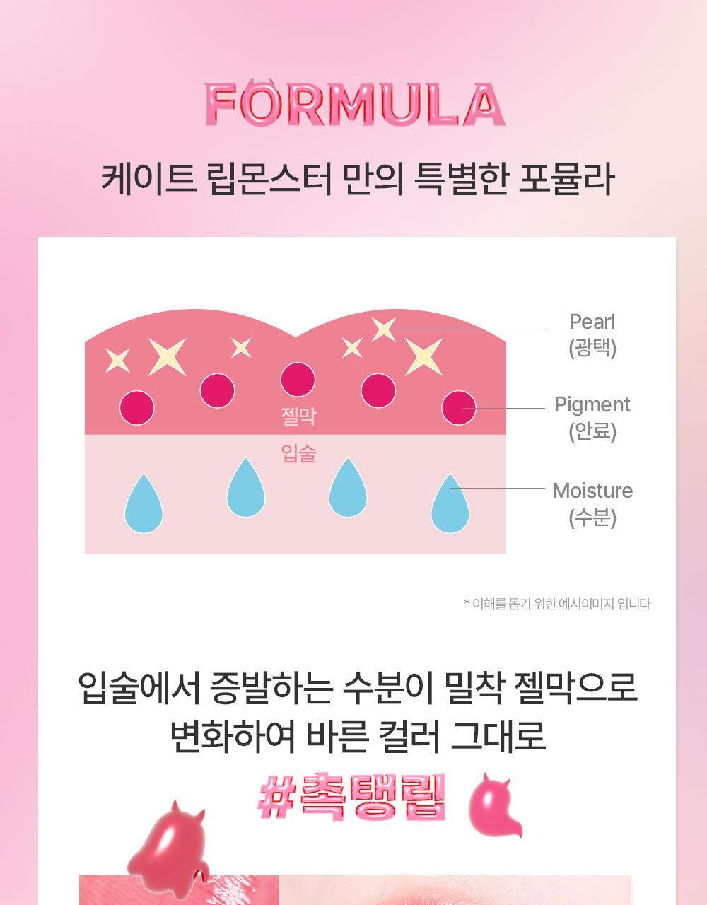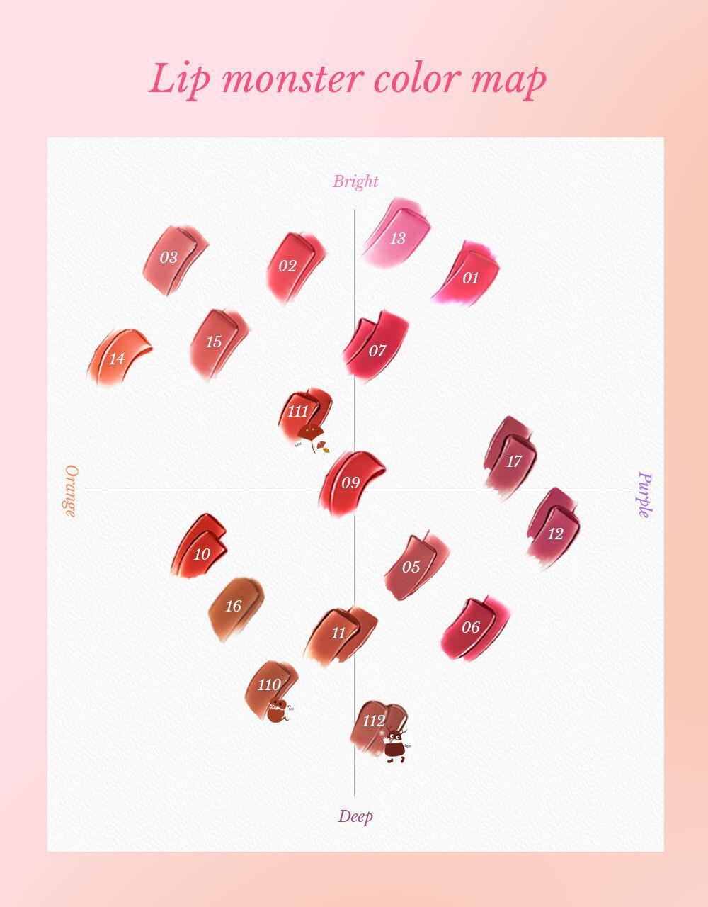 Ranked 1st place in the overall makeup category. The total number of shipments in Japan reached 15 million. A soft texture that melts like heated butter in a bowl. It provides a moist, non-sticky feeling and a glossy glass-like shine. It shows a seamless color that deepens transparently like the original color. The unique formula of Lip Monster transforms moisture evaporating from the lips into a tight gel membrane.