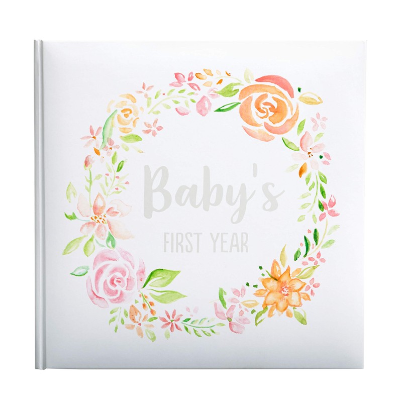 - Includes one "baby's first year" Baby memory book. Front cover reads "baby's first year" Inside a beautiful floral Wreath