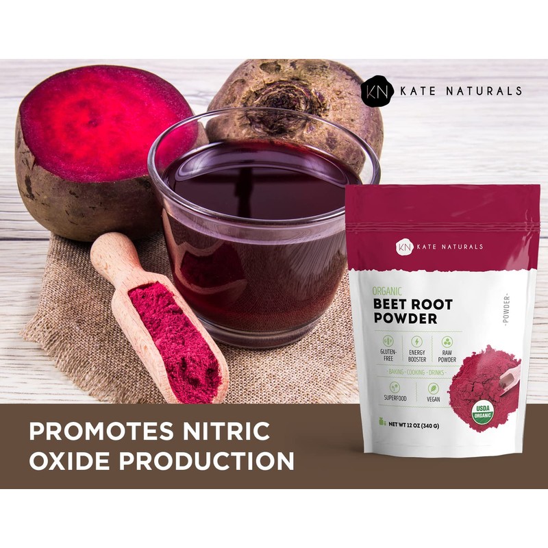 Kate Naturals Kate Naturals Beet Root Powder for Baking & Smoothies (12 oz) USDA Organic Beetroot Powder & Nitric Oxide Supplement for Increase Energy & Stamina Pre Workout. Gluten Free Organic Beet Powder