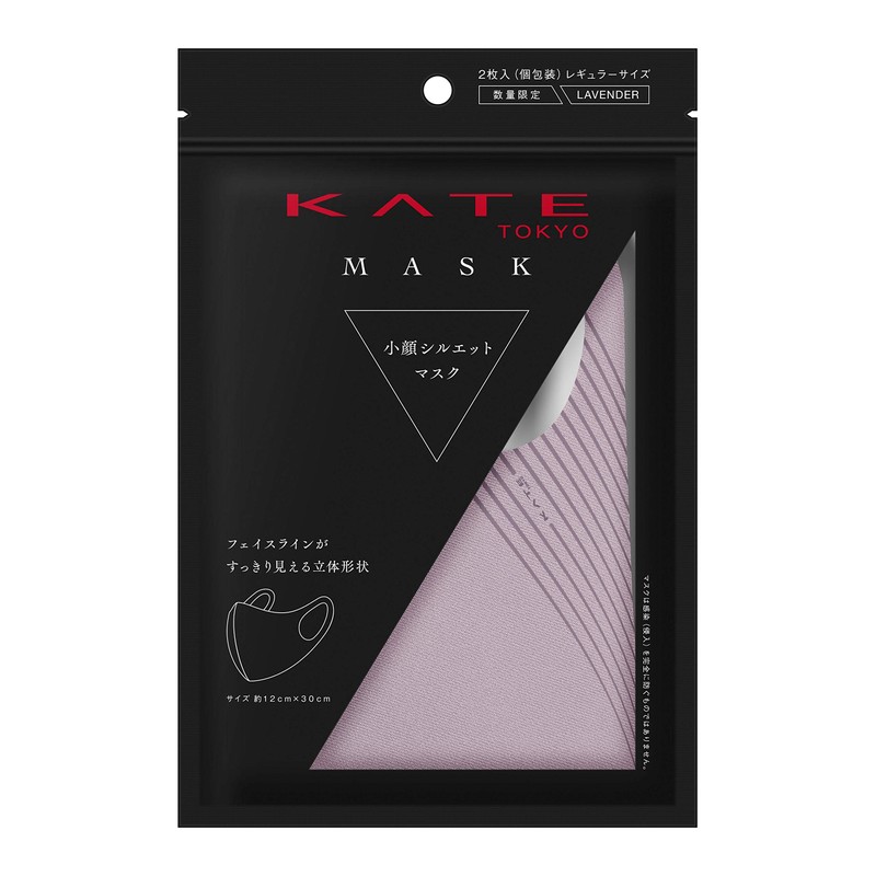KATE Small Face Silhouette Mask, Lavender, Washable and Reusable, Prevents Ear Pain, Absorbent and Quick Drying, 3D Mask Shape, Regular Size, 2 Sheets x 1