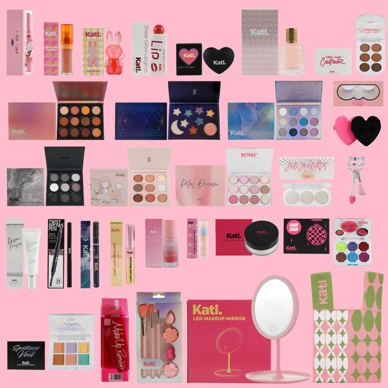 - Kati's Signature Makeup Kit - The Pink Box 30 Beginner Friendly Makeup Essentials, Eyeshadow Palette, Lip Gloss & Eyeliner Pink box