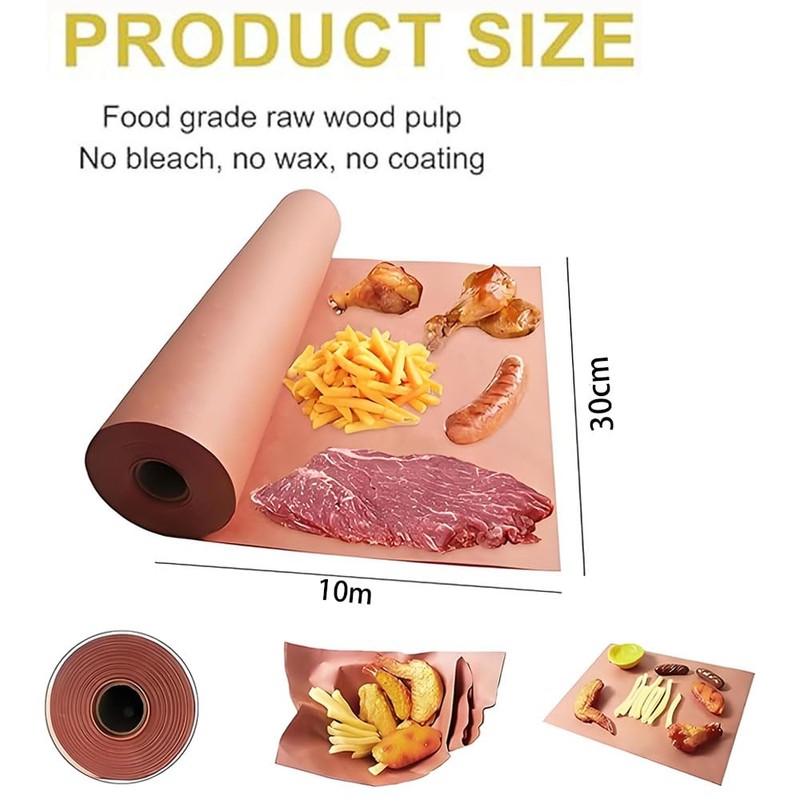 katmerio Butcher Paper, Pink, Butcher Paper, BBQ Kraft Paper Roll, Food Grade Kraft Paper for Grill, Fish Meat, Perfect Cooking of Juicy, 30 cm x 10 m Roll