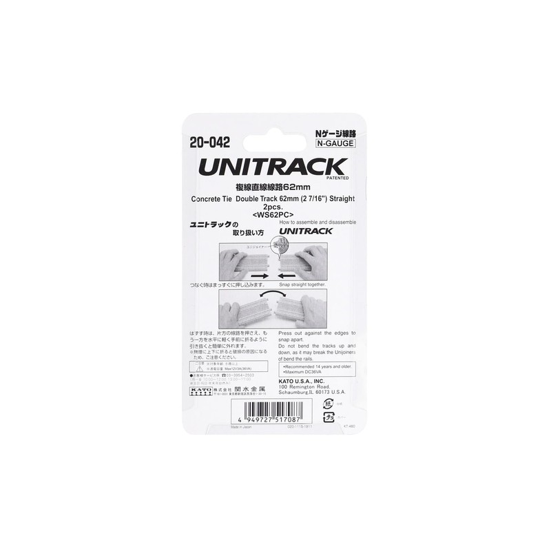 Kato 20-042 Unitrack (WS62PC) CS Dual Straight Track 62mm 2pcs