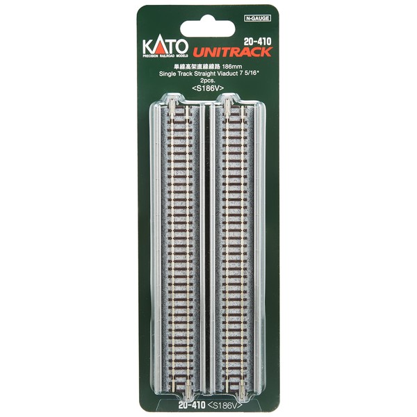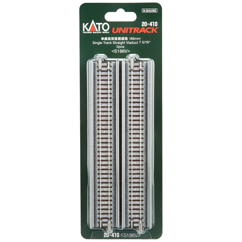 Kato N Gauge Single-Line Elevated Straight Track 186 mm, 3-Pack, 20 – 410 Railway Model Supplies