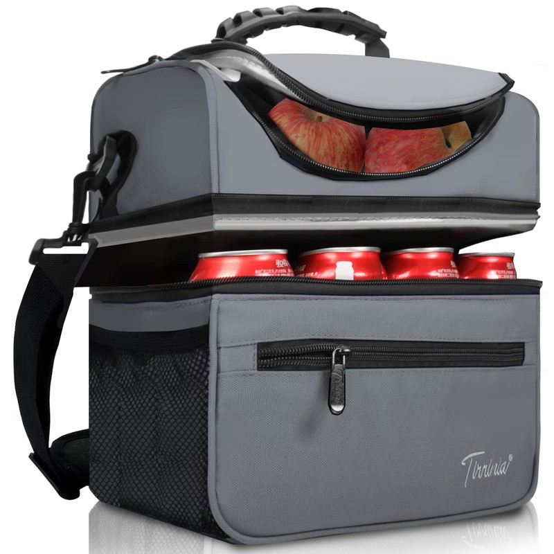 Kato Tirrinia Insulated Lunch Bag for Men, Extra Large 13L Lunch Cooler Bag with Dual Compartment, Leakproof Lunch Bento Box Bag, Suitable for Adult Work, Camping, Picnic, Light Gray
