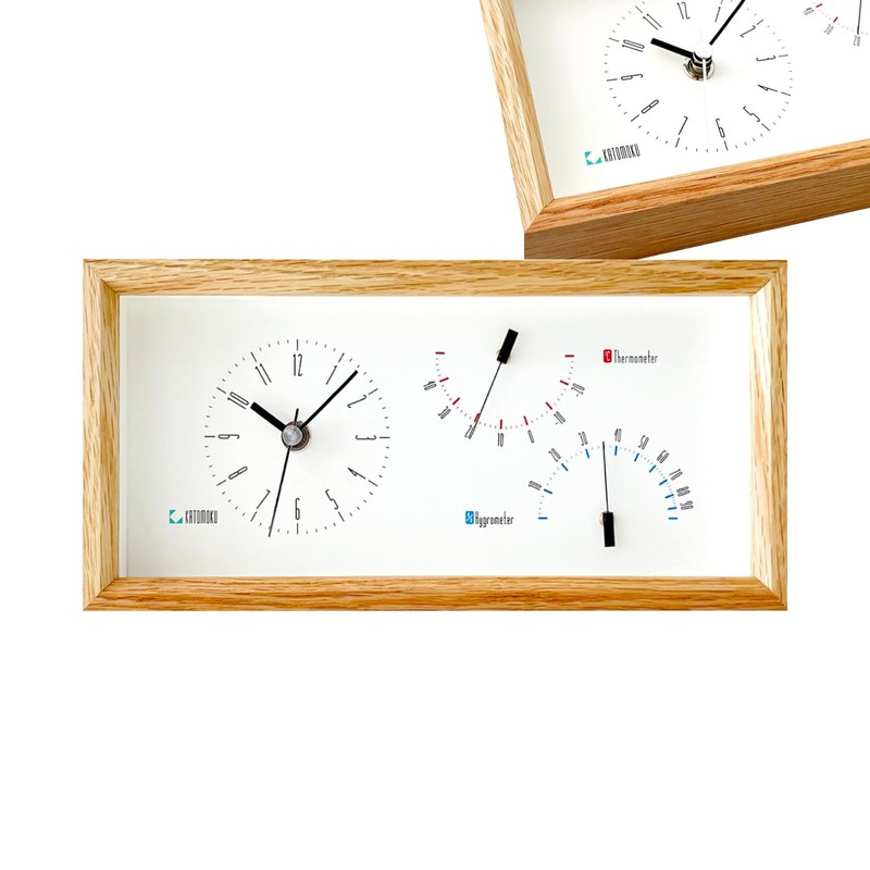 KATOMOKU Thermo Clock Oak km-152OA Wooden Watch Thermo Hygrometer, Dual Use, 10.0 x 4.8 x 1.8 inches (25.5 x 12.1 x 4.6 cm)