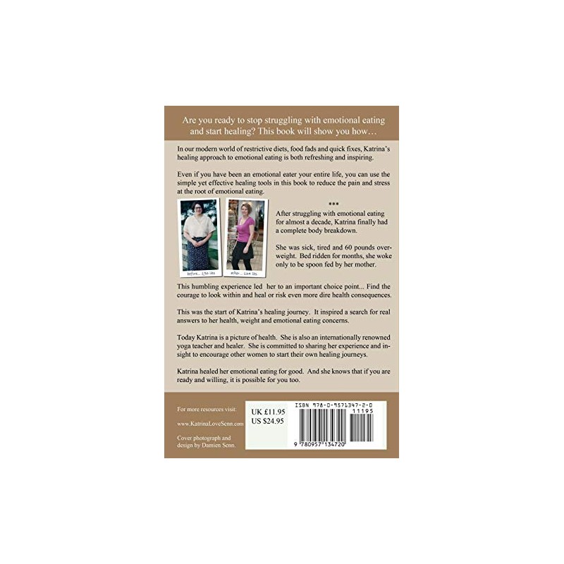 Are you ready to stop struggling with emotional eating and start healing?This book will show you how...In our modern world of restrictive diets, food fads and quick fixes, Katrina's unique healing approach to emotional eating is both refreshing and inspiring.Even if you have been an emotional eater your entire life, you can use the simple yet effective healing tools in this book to reduce the pain and stress at the root of emotional eating.After struggling with emotional eating for almost a decade, Katrina finally had a complete body breakdown.She was sick, tired and 60 pounds overweight. Bed ridden for months, she woke only to be spoon fed by her mother.This humbling experience led her to an important choice point...Find the courage to look within and heal OR risk even more dire health consequences.This was the start of Katrina's healing journey. It inspired a search for real answers to her health, weight and emotional eating concerns.Today Katrina is a picture of health. She is also an internationally renowned yoga teacher and healer.She is committed to sharing her experience and insight to encourage other women to start their own healing journeys.Katrina healed her emotional eating for good. And she knows that if you are ready and willing, it is possible for you too.