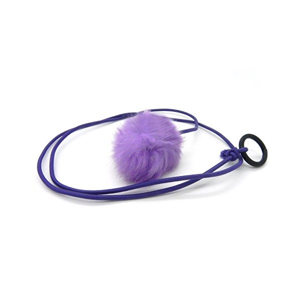 - Real rabbit fur pom pom cat toy on a durable elastic string. Light Purple color.