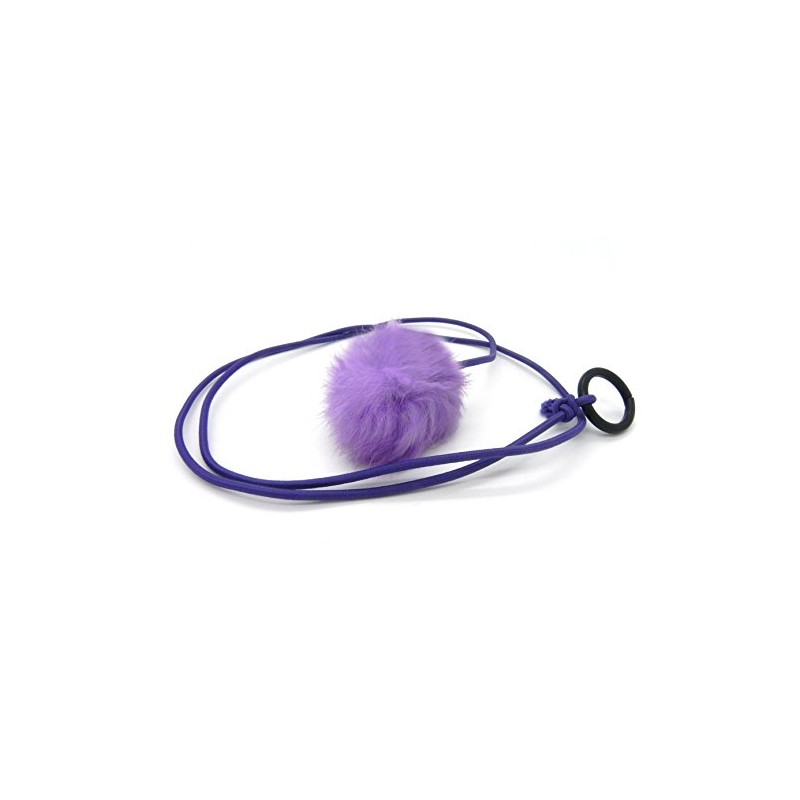 - Natrual rabbit fur pom pom is 2.5" in diameter. Durable Elastic purple cord is 36" long attached with a plastic ring.
