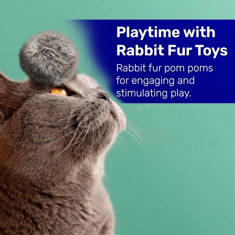 - 100% Real Rabbit Fur Pom Pom Cat toy.