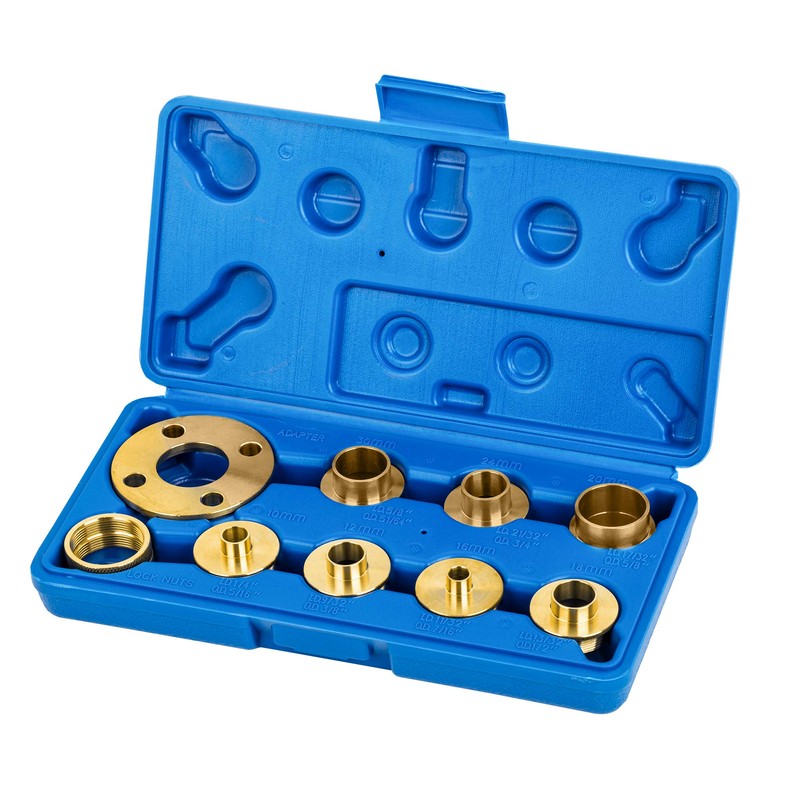 - This 10 Piece Brass Router Bushing Set will significantly expand the use of your router.