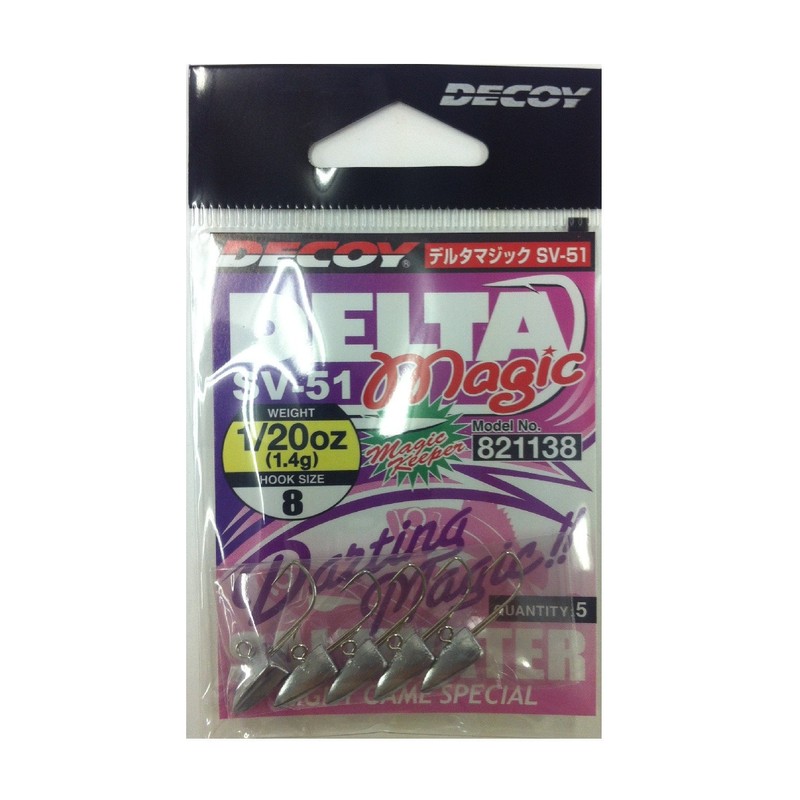 - デコイ デルタマジック SV-51■入り数:5個●ニュートラルフィッシュを無理矢理捕食モードへと変換させるマイクロワインド対応ジグヘッドです。新採用マジックキーパー搭載でダートアクションによるワームズレを解消。