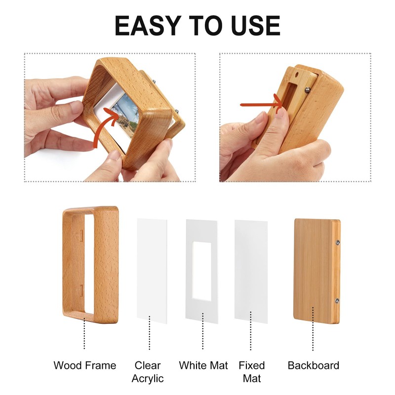 Kattepote 3 inch Wooden Mini Instant Photo Frames, with Mat for 5x3cm Mini Ph...