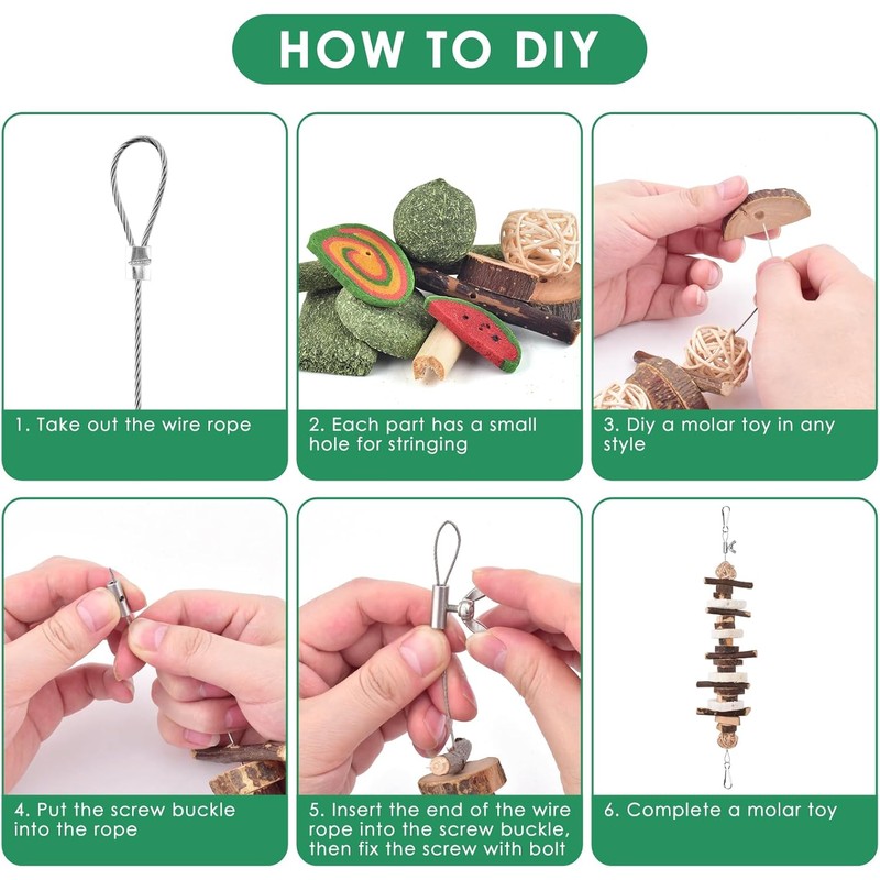 Multi-Fun: Package comes in enough assorted individual accessories for you and kids to diy different style molar chew toys for the little pets. Diy guinea pig toys, which can let kids experience the handmade fun, and improve the intimacy between kids and their little furry friends. What's more, these bunny treats, can be a healthy way to relieve pets' anxiety and stress, prevent them from chewing their cage and furniture. Let them enjoy yummy treat and hours of fun at the same time.