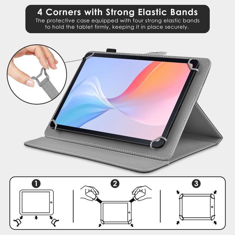 - High Applicability:11 inch tablet case universal with adjustable fixing silicon band and magnetic buckle,elastic silicon band is flexible enough to fit virtually all brands of 11 inch tablets.The sturdy magnetic buckle holds your tablet firmly, keeping your tablet in place safely and securely;