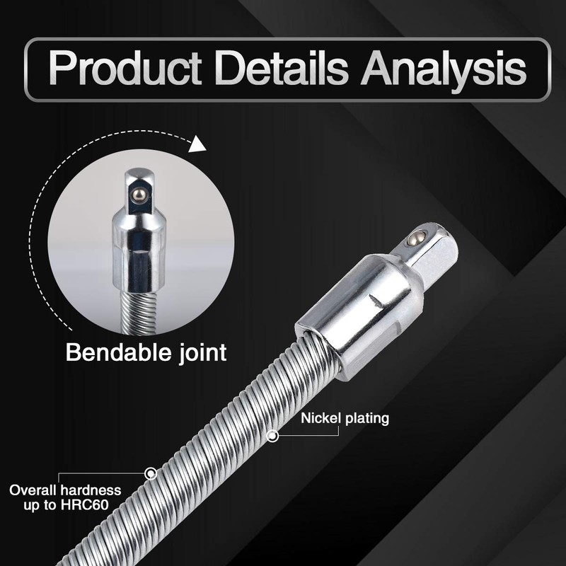 - ★【Flexible Socket】Made of heat-treated chrome vanadium steel with flexible spring steel shaft, anti-rust and durable,3/8 inch shank and 300mm length.