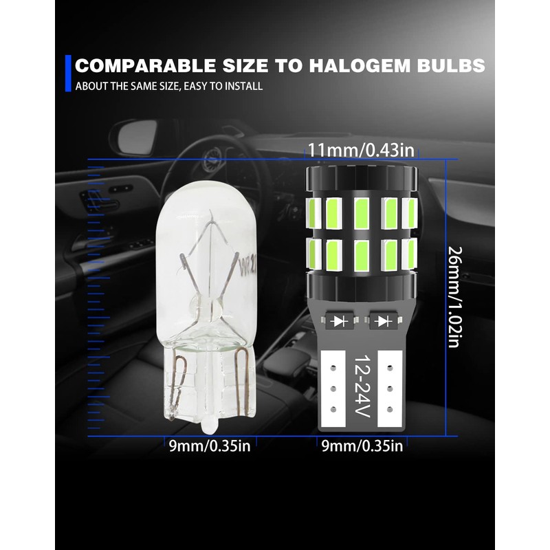 - ★【Montaje】T10 168 175 194 2825 W5W 147 152 158 159 161 184 192 193 259 280 285 447 464 555 558 585 655 656 657 1250 1251 1252 2450 2652 2921 579. Tamaño para adaptarse perfectamente a su carcasa y enchufe directamente en sus enchufes OEM; Plug & Play,fácil de instalar.
