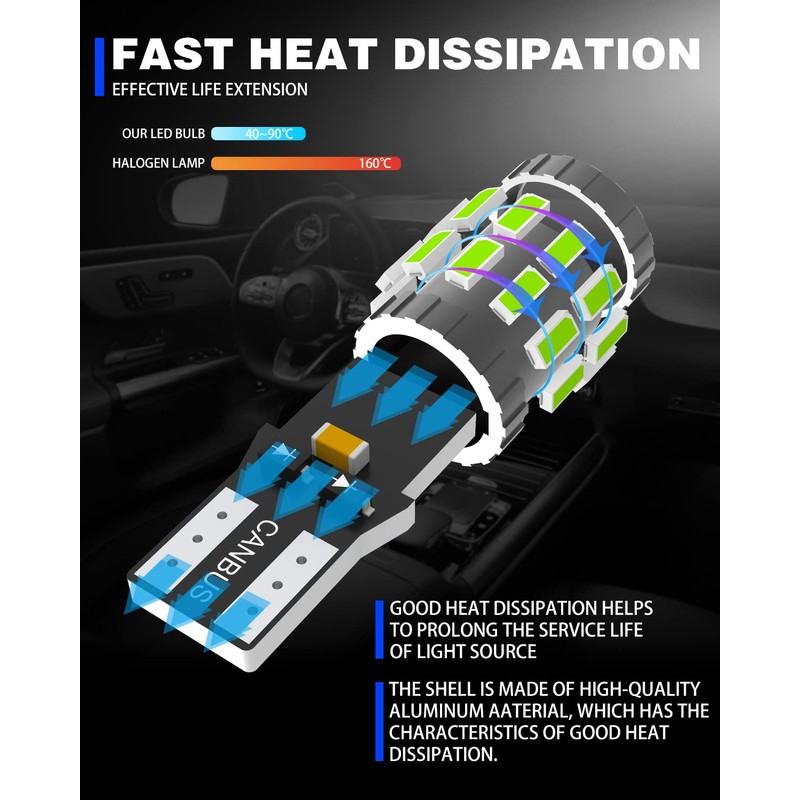- ★【Extremadamente Brillante】Canbus sin errores 3014 chips,sin punto ciego,ángulo de iluminación de 360 grados,súper brillante le da a su automóvil una nueva apariencia renovada. Resistente al agua,puede funcionar en cualquier mal tiempo,brinde una buena vista cuando conduce. Más de 60,000 horas de luz brillante continua.