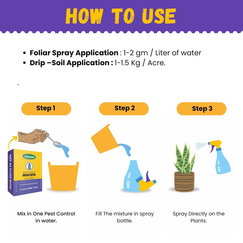 Katyayani Iron EDTA- Fe 12% EDTA Chelated Micronutrient for Vegetables, Fruit & Flower Plants, Corrects Iron Deficiencies (450gm x 1) (1lb)…