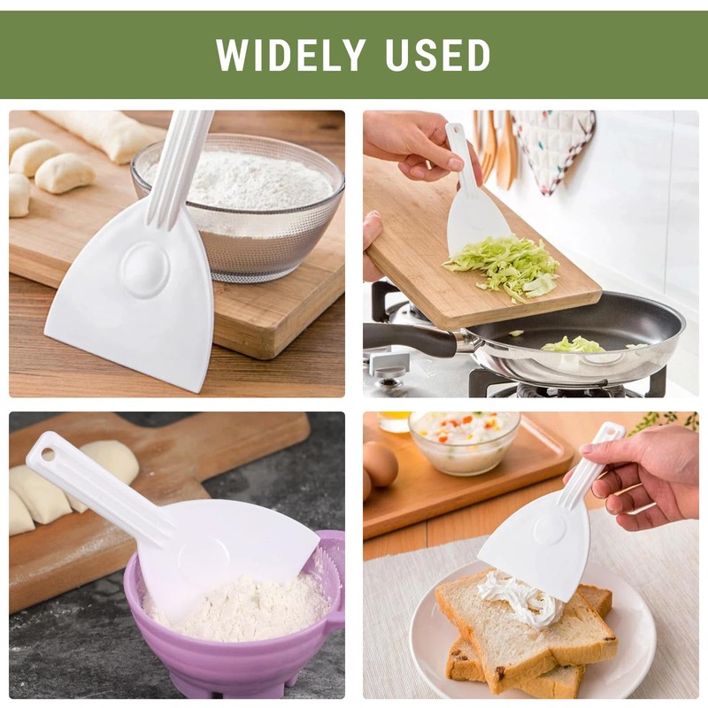 - DURABLE QUALITY Our dough spatula is made of high quality hard plastic, which is impact resistant, scratch resistant and extremely durable. No irritating smell and no damage. Rely on this durable option designed for long-term use