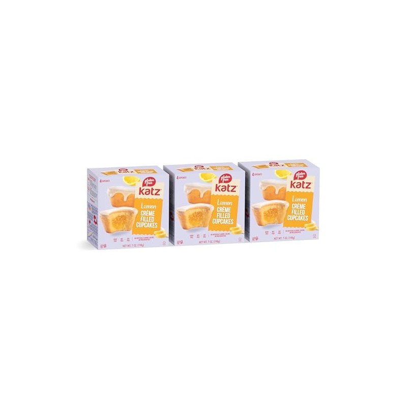 Katz Gluten Free Lemon Crème Filled Cupcakes | Dairy Free, Nut Free, Soy Free, Gluten Free | Kosher (3 Packs of 4 Crème Cupcakes, 7 Ounce Each)