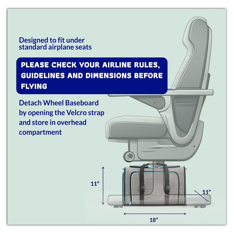 - AIRLINE Compliant: Made to fit under the front seat on most airlines. Please Check your airline's rules before you buy. It has a strap and handle to attach to your suitcase for easy moving around. Your pet can stretch out during car rides and under the seat on the plane