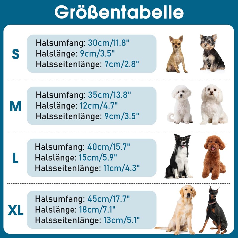 - ADJUSTABLE VELCRO CLOSURE - The Velcro fastener on the dog collar can be easily adjusted to fit the neck circumference, ensuring your dog's comfortable wearing experience. You can adjust the protective collar to the size of your pet.