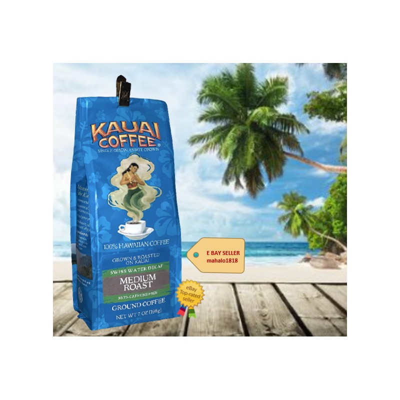 One sip of our Kauai Swiss Water Decaf Estate Roast coffee and you’re instantly transported to paradise! Using the Swiss Water Process, this Medium Roast coffee is 99.9% caffeine-free, and a 100% Hawaiian coffee, featuring a smooth, delicious flavor and amazing aroma. The medium roast style coffee delivers a bright aroma with light floral notes, making it the perfect cup of coffee to drink, day or night. Available in both Whole Bean, and Ground, options.