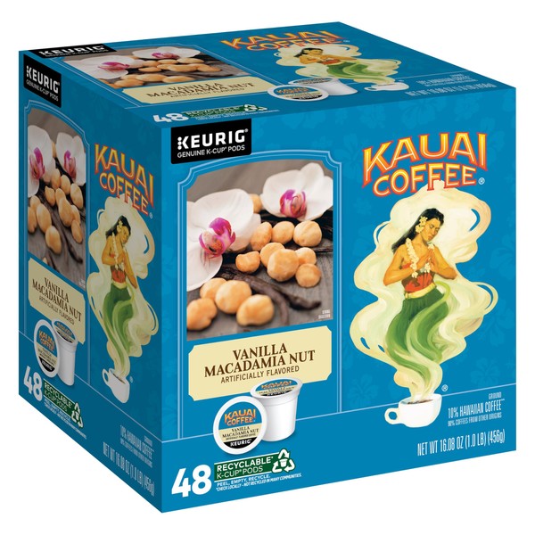 Kauai Coffee K-Cup Pods for Keurig Brewers – Arabica Coffee, 10% Hawaiian – Medium Roast, Vanilla Beans with Toasted Macabamia Nuts – Vanilla Macadamia Nut, 1 Pack of 48 Single Serve K-Cups