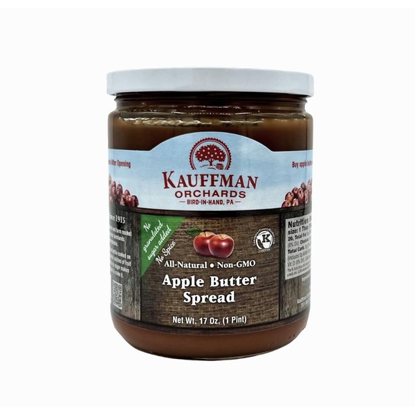 Kauffman Orchards Apple Butter Spread, Plain, No Sugar or Spice, 17 oz. Jar