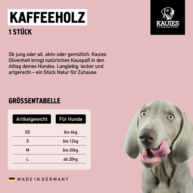 - Long-lasting chewing pleasure: robust, durable chewing sticks made of coffee wood for a low-risk chewing pleasure over several weeks (choose the chew stick according to the weight and bite force of the dog)