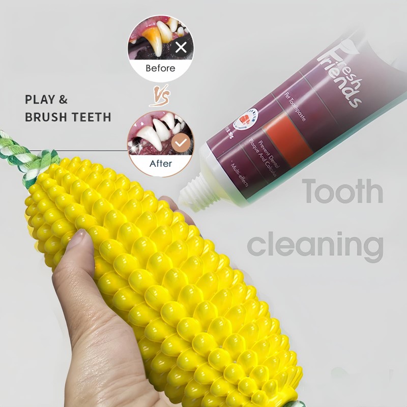 - Zähneputzen bei Hunden – Es hat sich herausgestellt, dass Hunde ihre Zähne selbst putzen. Sie können die Zahnpasta beim Kauen auf das Spielzeug des Hundes auftragen. Sie reinigt die Zähne effektiv in alle Richtungen, sorgt für frischen Atem, reduziert Plaquebildung beim Hund und beugt Zahnfleischerkrankungen vor, lindert Zahnungsbeschwerden und fördert die Mundgesundheit.