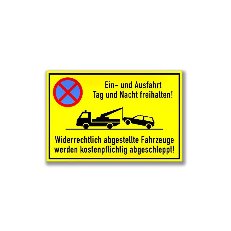 - Motif: "Entry and exit day and night free. Illegally parked vehicles are towed for a fee"