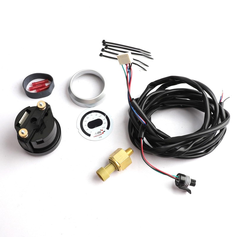- 【Package Contains】Oil pressure gauge*1, 150 PSIG pressure sensor*1, harness*1, white oil pressure faceplate*1, silver bezel*1, seals and tools for installation