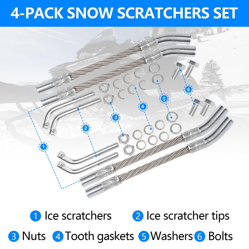 KAVIUS Ice Scratchers Snowmobile 4PCS Set Compatible with Polaris Arctic Cat Ski-doo Lynx Cable Ice Scratchers Kit Fit for Reverse & Non-reverse Gear Equipped Snow Mobiles Track Heights Above 2-1/2"