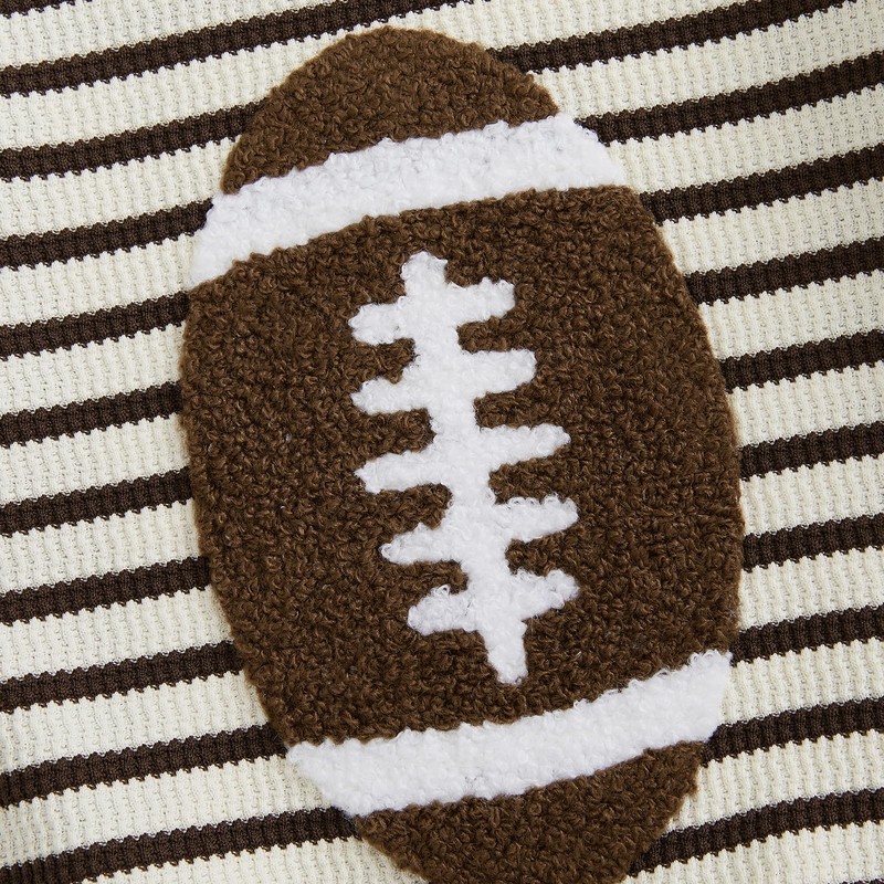 Kavousa Toddler Boy Fall Clothes Football Embroidery Long Sleeve Pullover Elastic Waist Stripe Pants 2Pcs Fall Outfit (Football Waffle Brown, 6-12 Months)