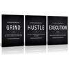 KAWAHONE KAWAHONE Canvas Painting Wall Art, Grind Hustle Execution Motivational Wall Art Decoration Posters Prints for Living Room Bedroom, Office Decor, Gallery-Wrapped Canvas Art Set Framed Ready to Hang