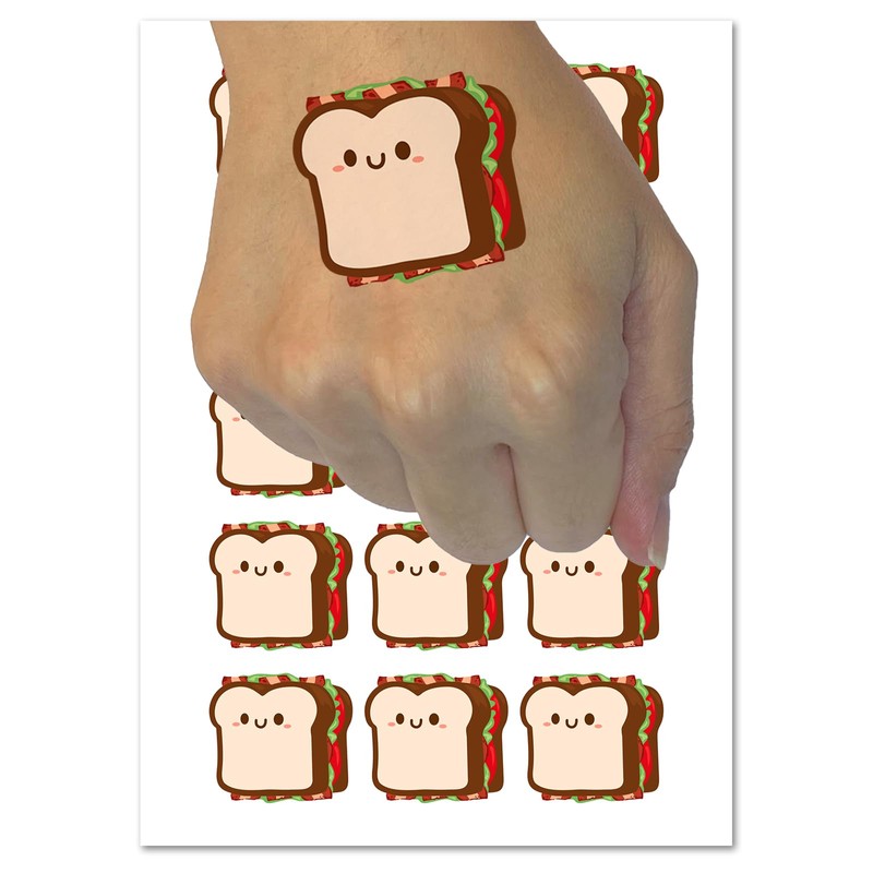 Kawaii BLT Sandwich Bacon Lettuce Tomato Cute Temporary Tattoo Water Resistant Fake Body Art Set Collection - 54 1" Tattoos (1 Sheet)