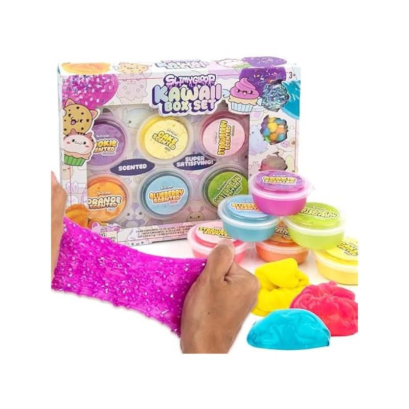 Kawaii Box Set, 6-Pack Scented Slimes, Fluffy Slime Cloud, Glitter Slime, Water Slime, Fun Slime Add Ins, Slime for Kids, Kids Party Favors Goodie Bags, Slime Bulk, Kids Slime, Food Slime