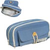 Kawaii Canvas Pen Pouch Bag with Large Capacity and Multi-Layered Organization (Lake Blue, One Size)
