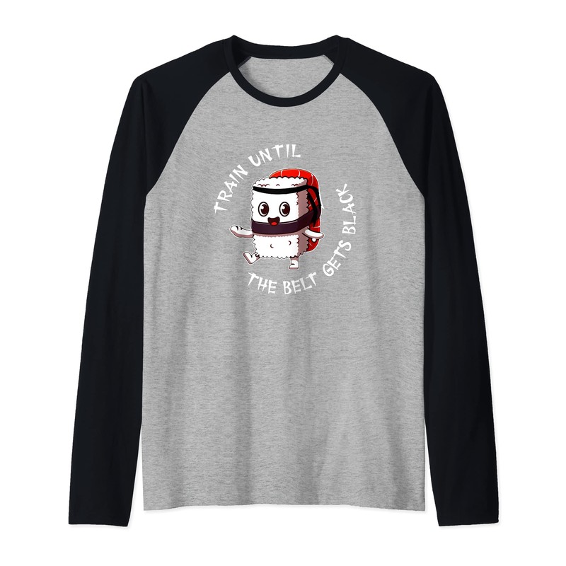 Kawaii Karate Sushi Nigiri Train Until The Belt Turns Black Raglan Baseball Tee
