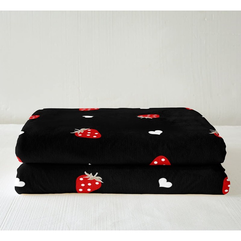 Kawaii Strawberry Decor Throw Blanket - Red Fleece Sherpa Blanket, Soft Warm Plush, Twin 60"x80"