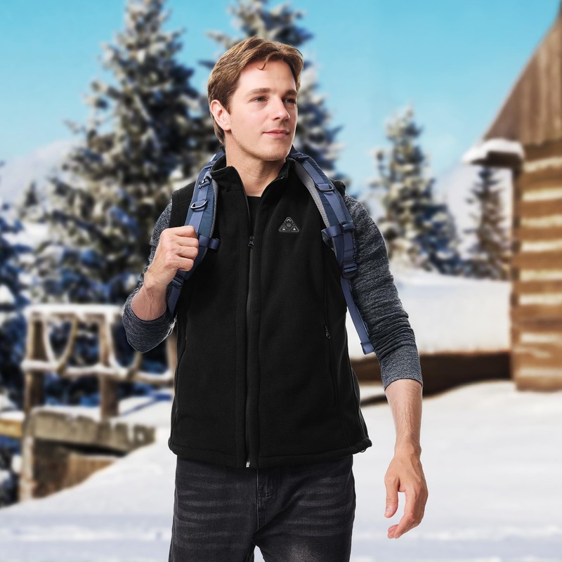 - Lightweight & Soft Fleece Men's Heated Vest: Our ultra-lightweight and soft fleece heated vest features a stand-up collar that delivers warmth while ensuring freedom of movement thanks to its slightly elastic design. Two zipper pockets provide a secure place essentials close by or keep your hands warm.