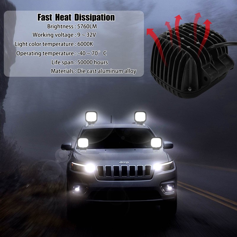 - Super Bright LED Work Light: Total 48W each light, 16pcs*3 LED chips, adopts high power 6000k LED chips and specially designed optical lens, it will light your roads in the future, added more clear visibility to your off road vehicle, giving you a better driving experience