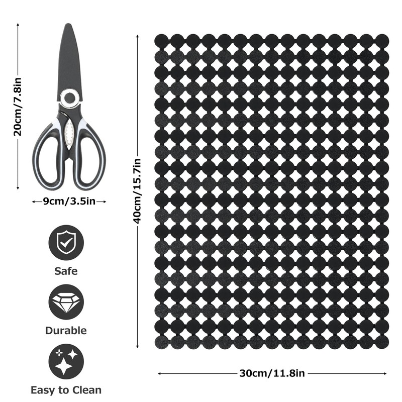 Kawlity 2-Pack Non-Slip Sink Pads with Scissors (11.8x15.7 Inch) - Easy Clean Dot Pattern Mat for Kitchen, Bathtub, Countertop - Adjustable & Machine Washable (Dark Black)