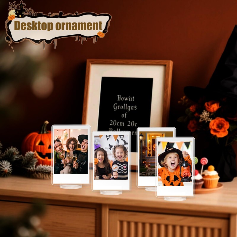 KAWZBYN 20 Pcs 2x3in Small Picture Frames with Base Acrylic Photo Display Clear Square Mini Picture Frames Double Sided Clear Desktop Display Vertically for Home Halloween Ornaments
