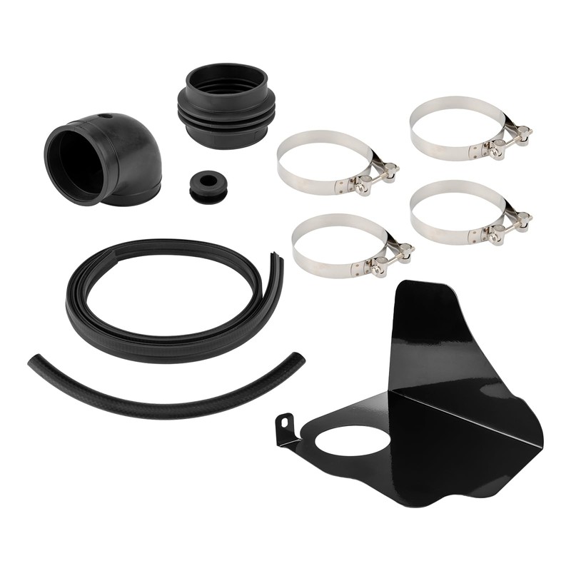 - [High Performance] : The Cold air filter intake kit can help your engine to draw more cold air resulting in better throttle response and higher explosive horsepower output.[Package included]:1 x Air Filter, 1 x Air Intake Tube, 1 x Silicon Hose, 2 x Silicon Connecter, 1 x Filter Heat Shield, All accessories on the picture are included