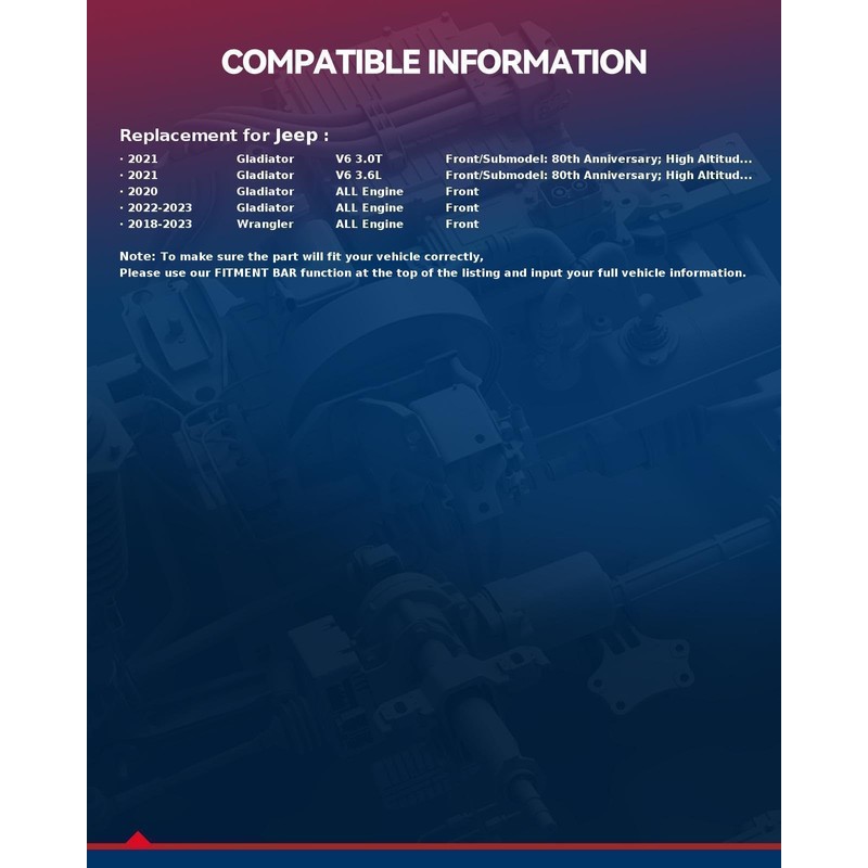 - 【Vehicle Compatible】:513423 Wheel Bearing and Hub Assembly fits for 2018-2023 Wrangler, 2020-2023 Gladiator