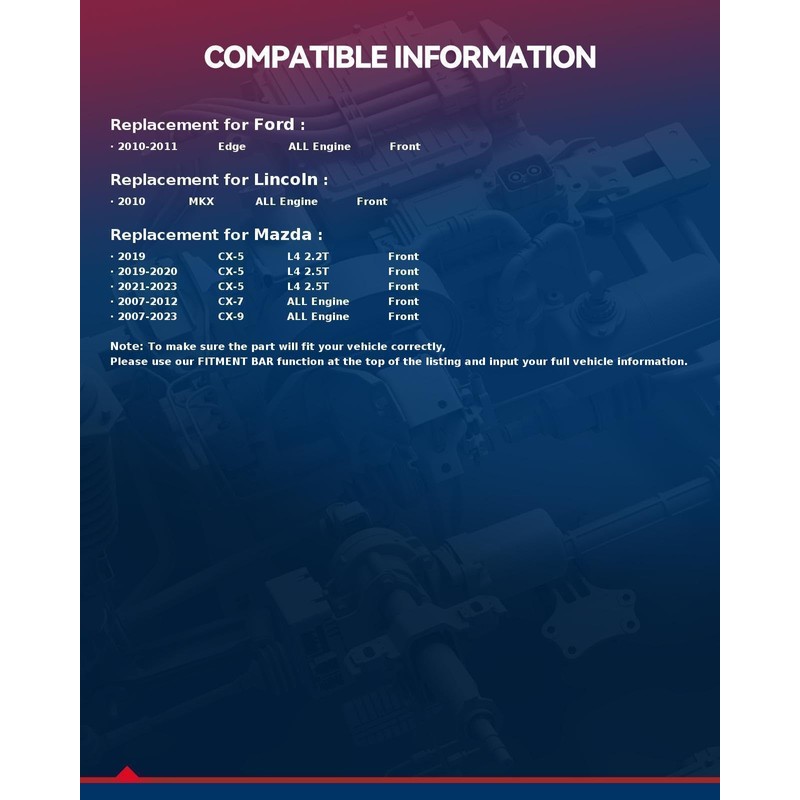 - Compatible Vehicles: Automotive replacement brake kit is compatible with CX-9 2007-2023, Edge 2010-2011, C-X-7 2007-2012, C-X-5 2019-2023 2.5T, MKX 2010, C-X-5 2019 2.2T